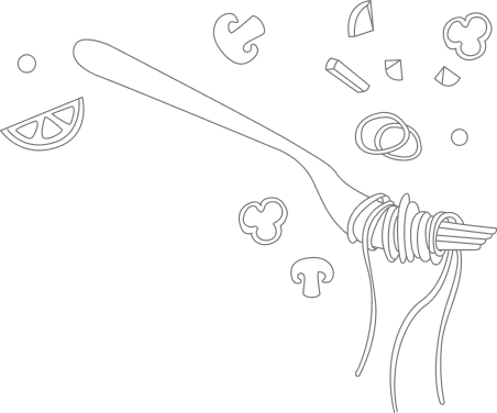 Рисовая лапша, креветки, соевые ростки, лук репчатый, яйцо, лук зеленый, болгарский перец, кунжутные семечки, сельдерей, соевый соус, масло раст, соль, карри, соус Хойсин, соус устричный, соус Ок, масло сливочное, масло кунжутное)
